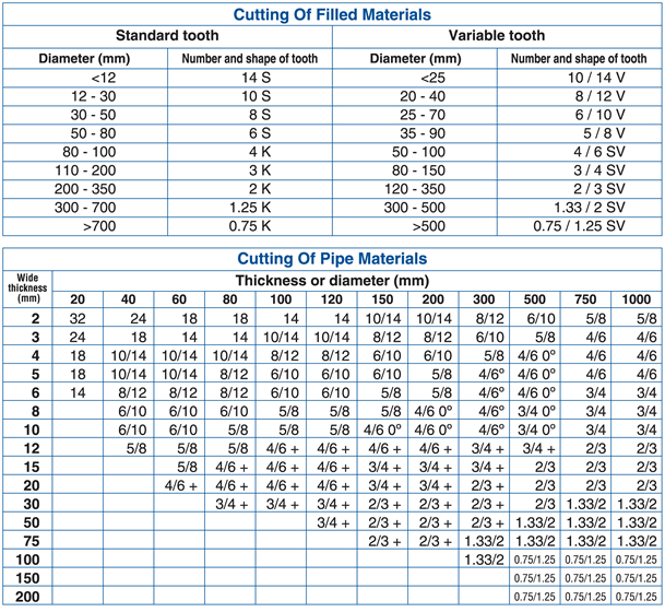 Before opening saw and mounting it on the machine, you should wear certainly safety glass and gloves. Do not never open the saw purchased by clashing or dropping. After installing it on the machine, take off the coating over tooth. After installing it on the machine, you should stretch the saw with recommended values. After installing the saw, on the first cutting, you should use as 50% of recommended proceeding value. You can find the cutting speed values, appropriate for the material to be cut on the below table. You shall maximum set life and minimum cost on the condition of following cutting speed and coolant emulation values given on below tables. As per formation the chip left during cutting process, you can increase or decrease cutting speed given on the table. If there is various vibrations and abnormal, stop the machine and check the tooth If there is no problem with tooth, accordingly you can increase or decrease cutting speed. At the end of the work or if the saw would not used for a long time, you should leave the saw loose.